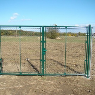 Bránky KLASIK sú vyrobené z ocelových trubiek o priemere 42mm, výplet s pletivom Klasik PVC, stĺpiky majú priemer 60mm, vložka pre zámok FAB, nastaviteľné pánty, dorazový diel so skrutkou.